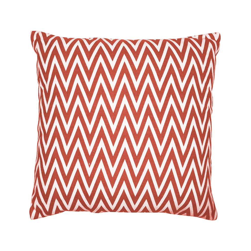 Červený polštář s cikcak vzorem